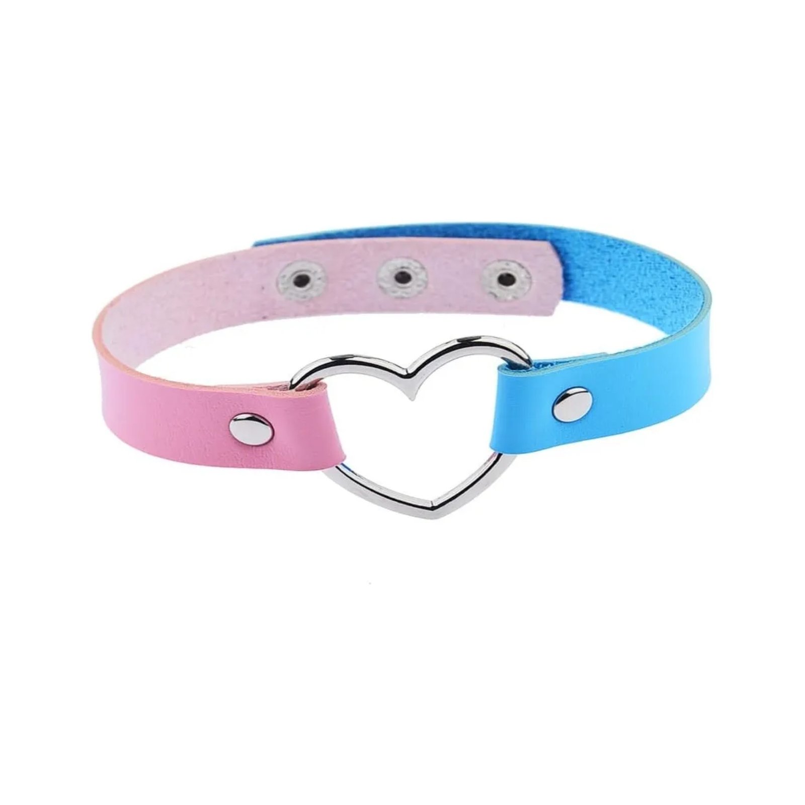 Collar azul con rosa con argolla metálica en forma de corazón