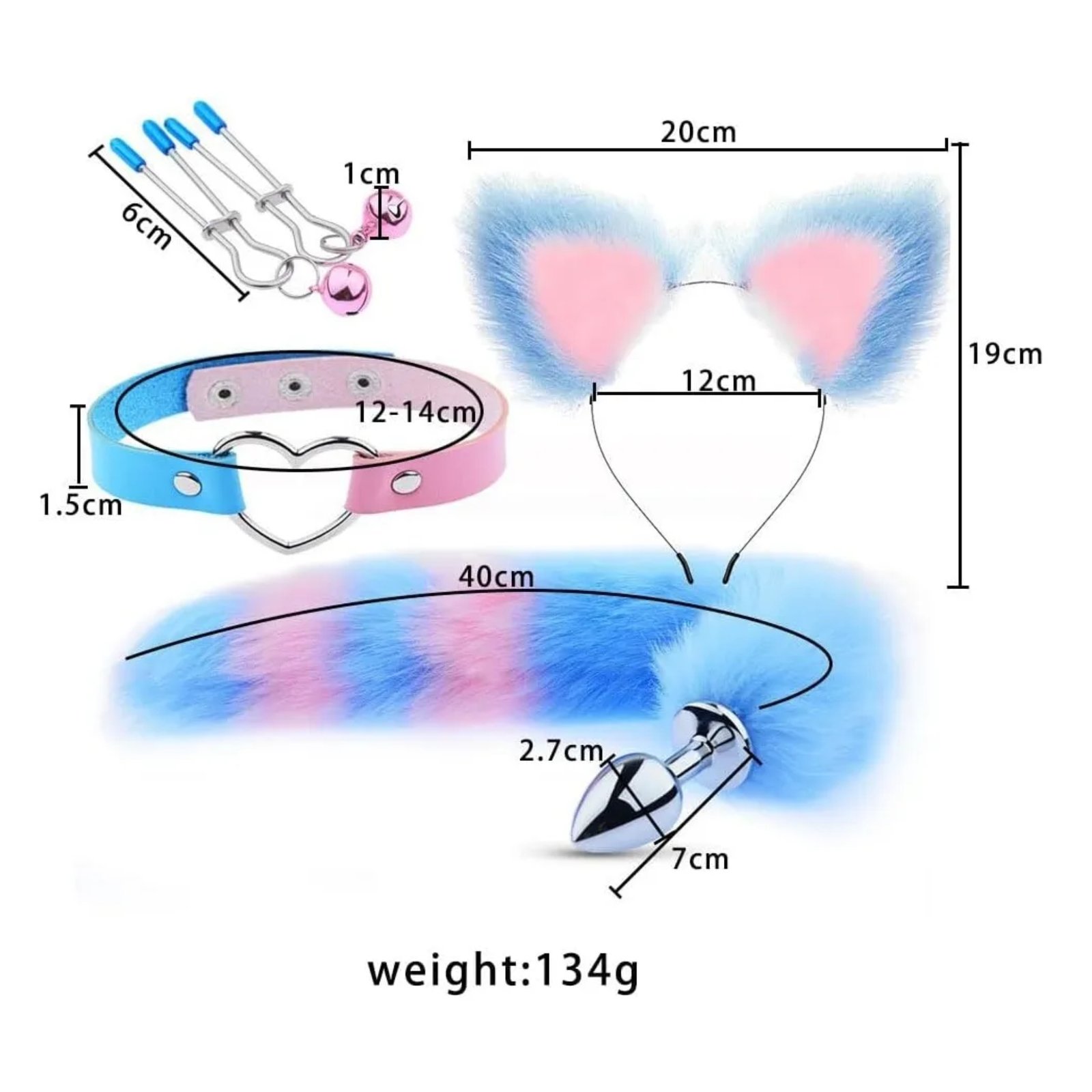 🐾 Set BDSM Animal – Zorro Rosa con Azul (4 piezas)