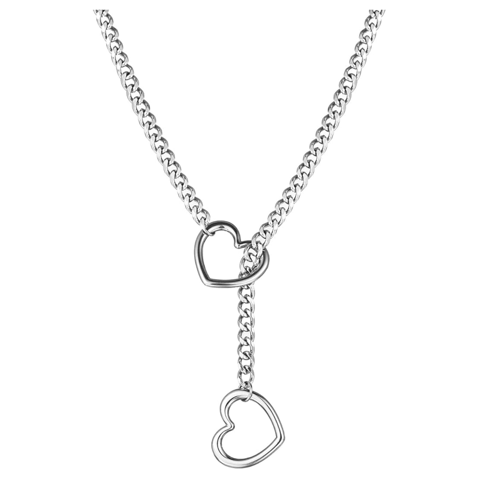 Collar de Cadena con Corazones Plateado