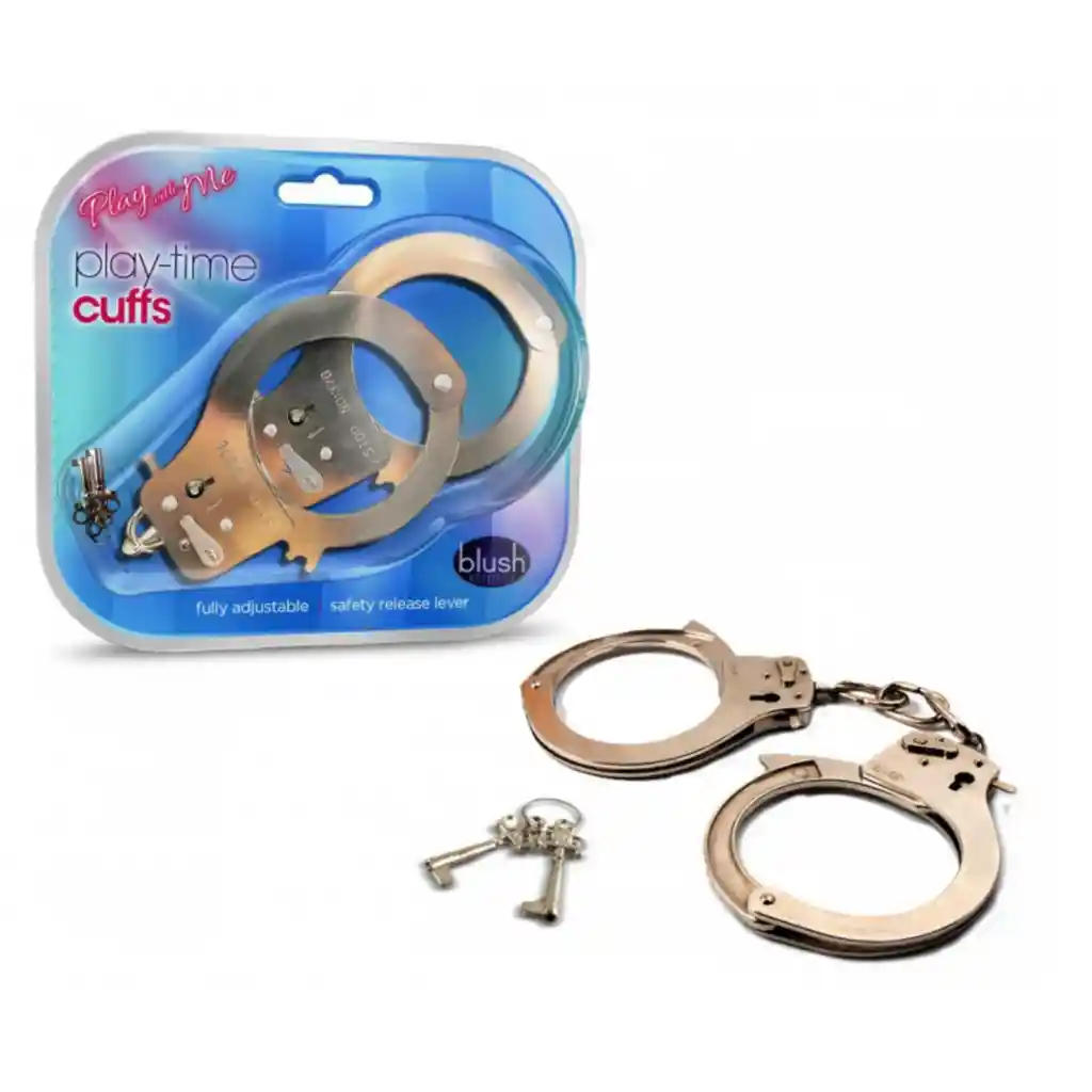 Las Play-Time Cuffs de Blush están pensadas para quienes quieren empezar a explorar el juego de sujeción de manera fácil y segura. Su diseño metálico clásico aporta firmeza, mientras que su ajuste permite adaptarse cómodamente a distintas muñecas.