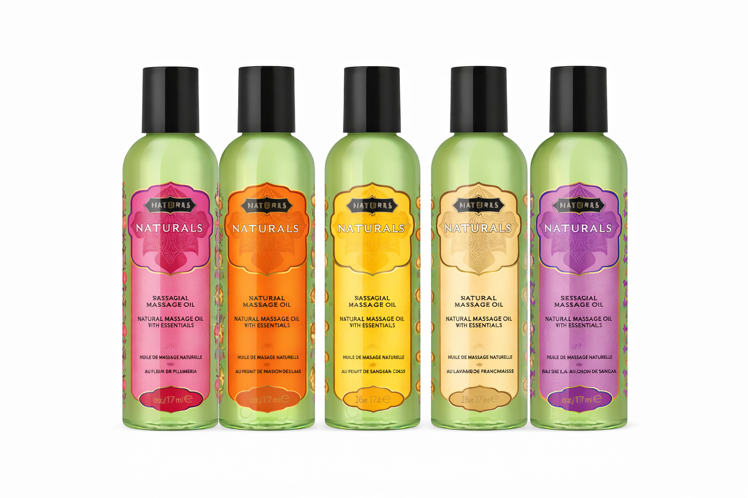 Naturals, es un aceite de masaje sensual con aromas exóticos. Sedoso y con aromaterapia. Presentación de 59ml.