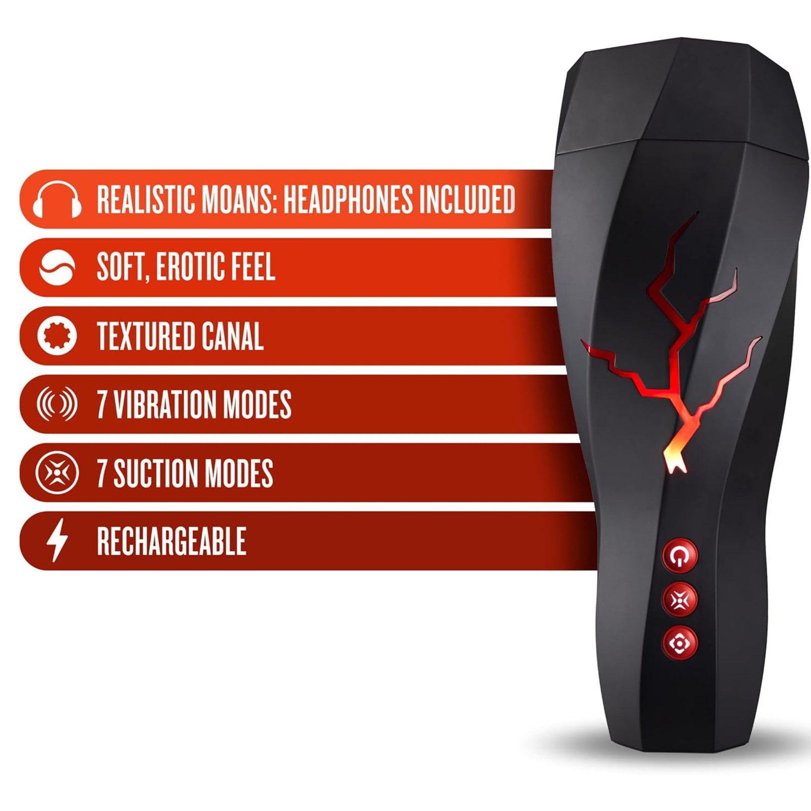 Sus 7 funciones de vibración recorren todo el cuerpo del masturbador, aumentando la presión interna y llevándote a nuevas formas de disfrutar. Para un juego sensorial completo, conecta los auriculares incluidos y escucha gemidos eróticos realistas que intensifican la fantasía y te acompañan hasta el clímax.