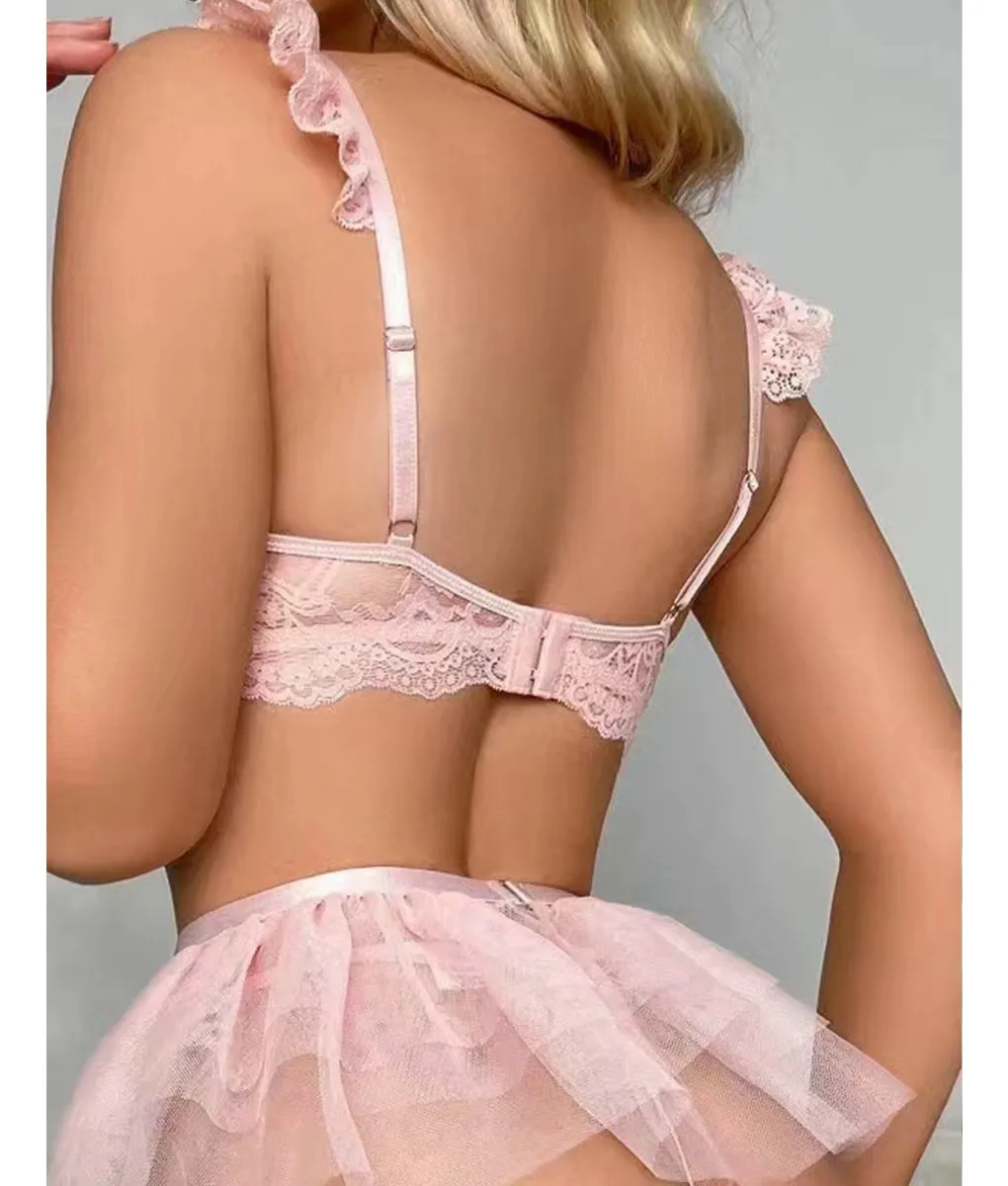 Incluye: Top/bralette + falda rosa + tanga