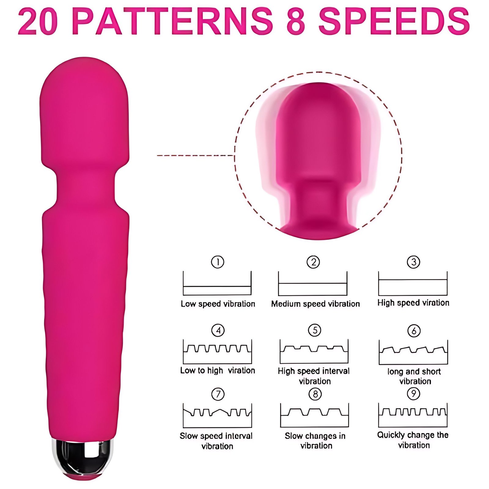 Vibración potente: 20 modos, 8 velocidades