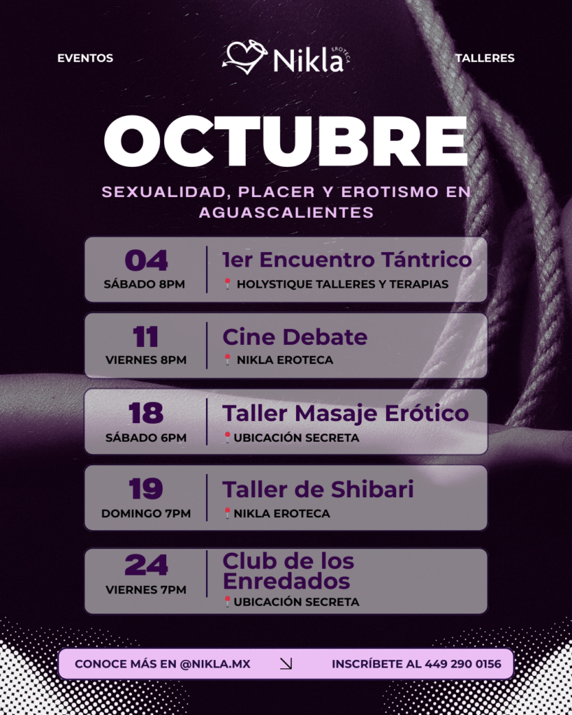 Conéctate con nosotros para charlas, talleres y eventos. Creamos un espacio seguro para explorar juntxs el Erotismo, Placer y Sexualidad en Aguascalientes
